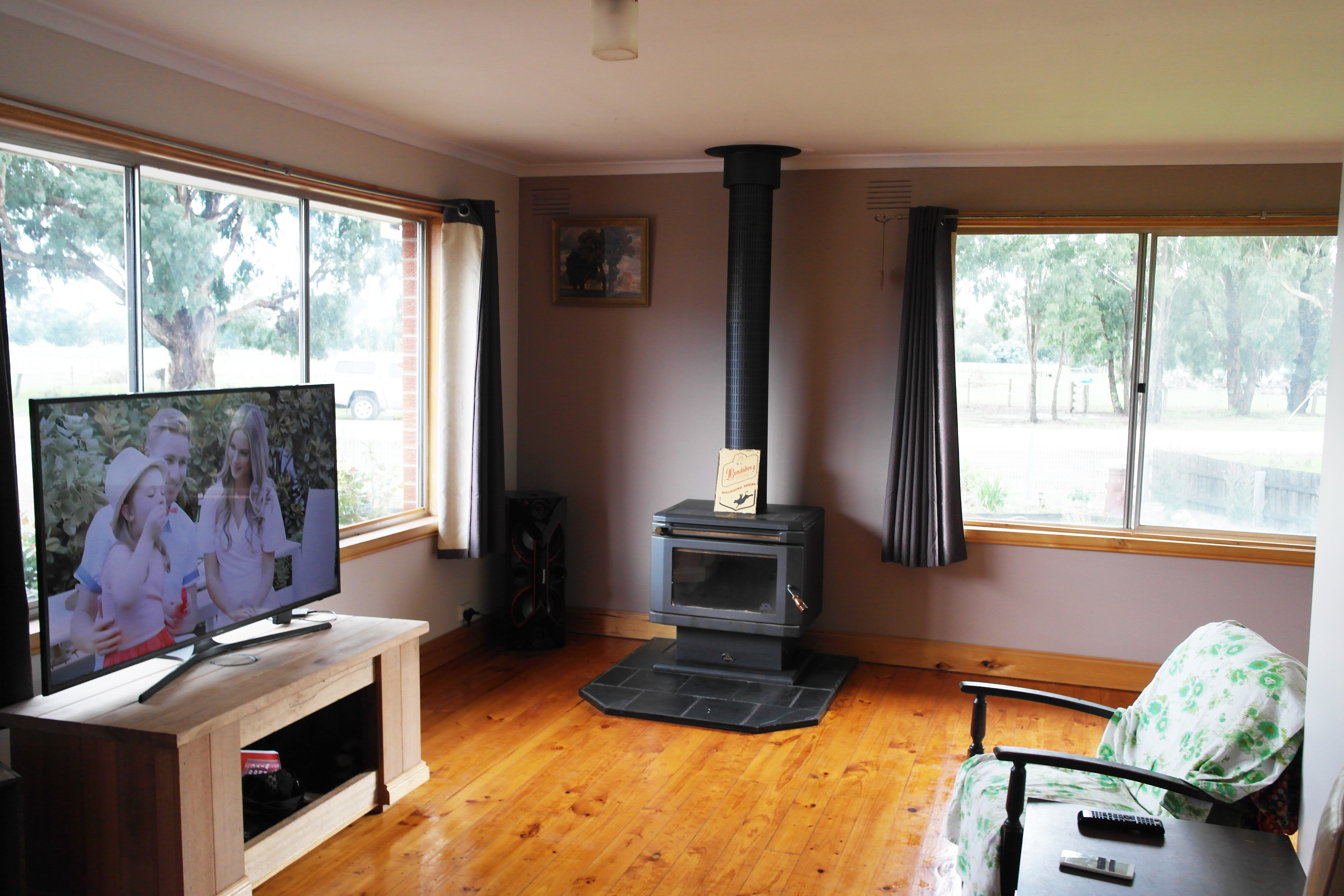 * Solid fuel heater plus split system ensures cosiness throughout
