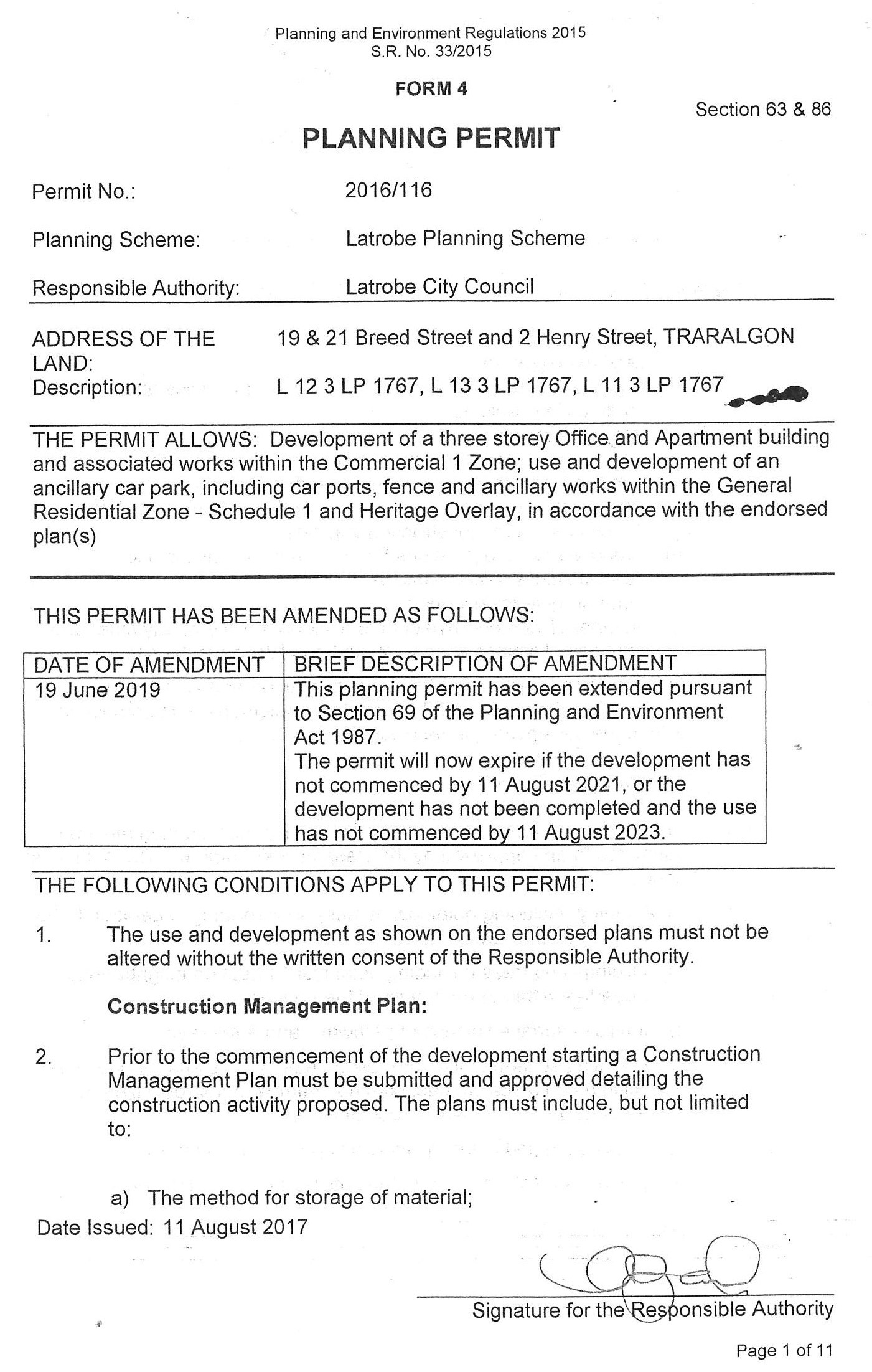 * Existing Planning permit for a 3 storey office & apartment building - to be completed by August 2023 OR