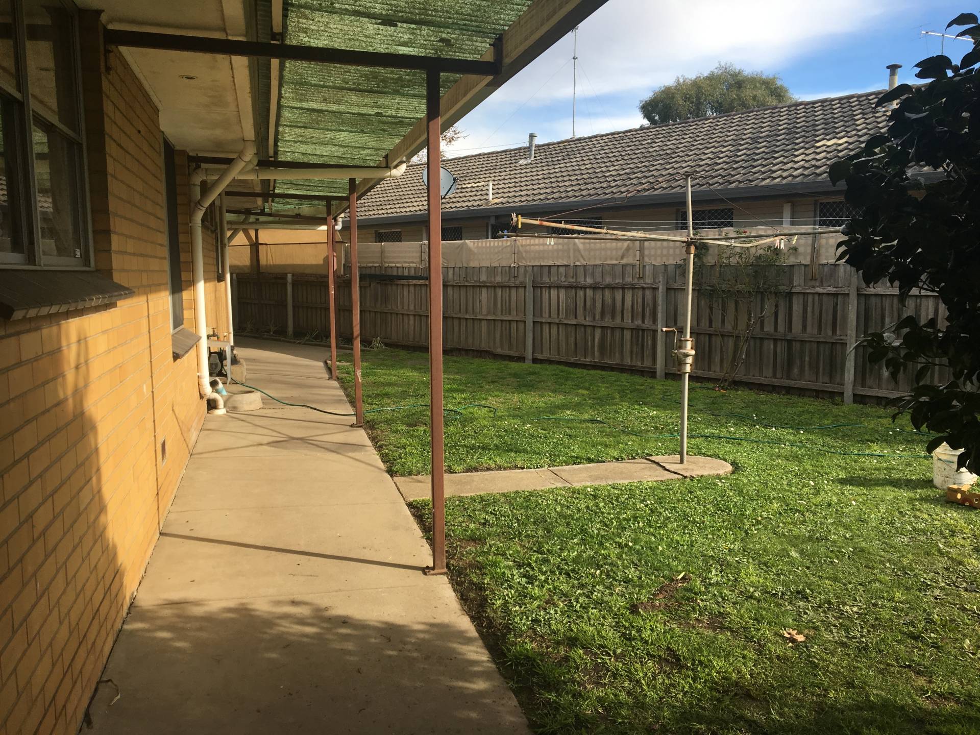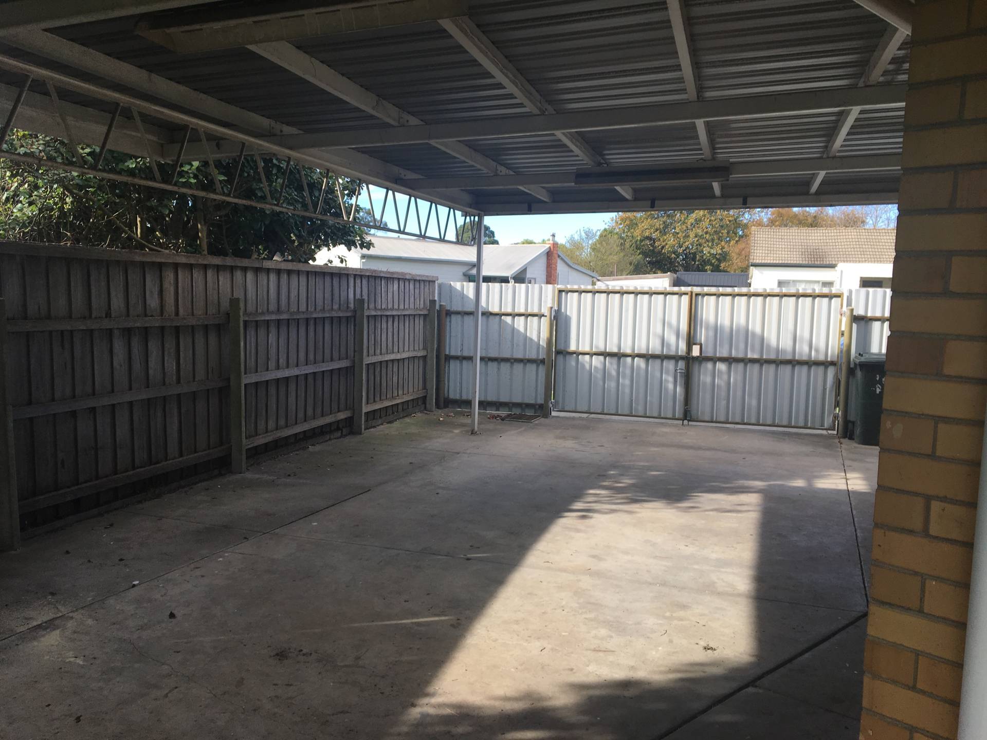 External offers, enclosed front yard with neat picket fence, enclosed rear yard with easy to maintain gardens and alcove area, large/ tall single carport with gate to secure and single remote control garage with enough space for work shop at the back.