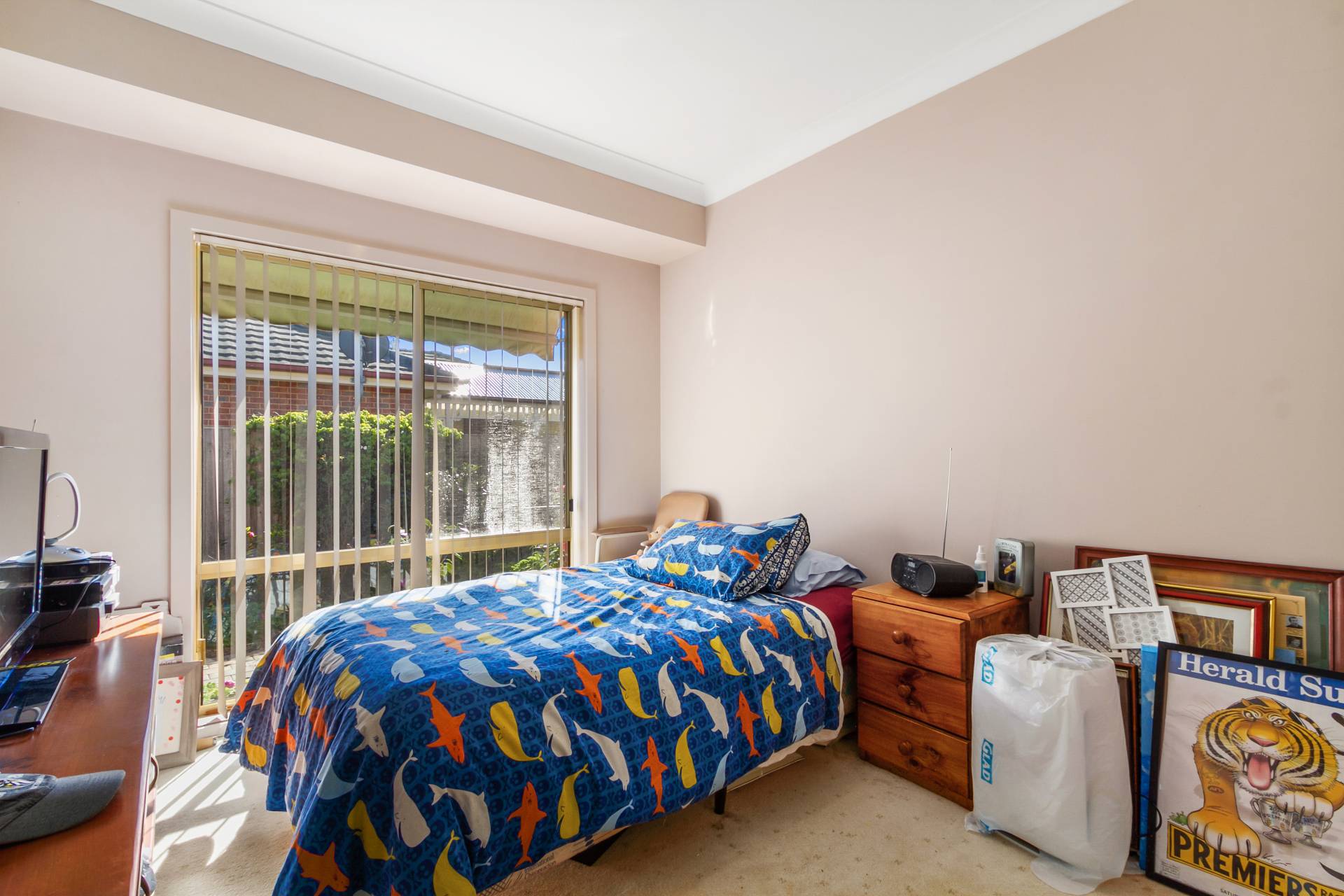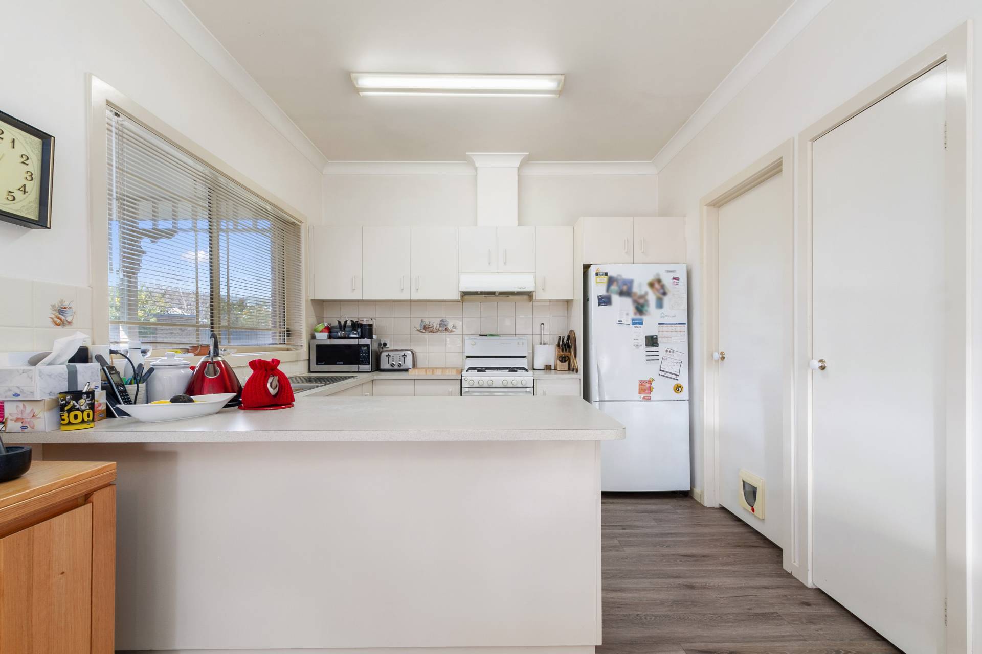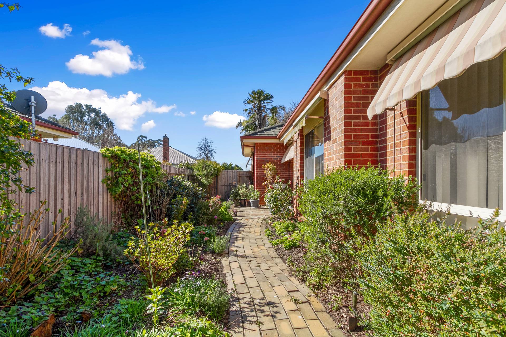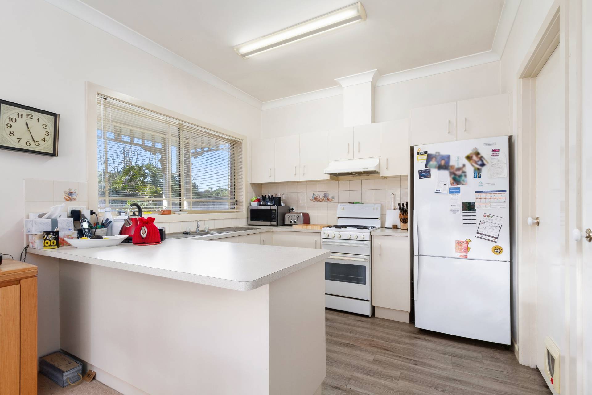 * Open kitchen/dining with north facing sliding door to small low maintenance garden with shed