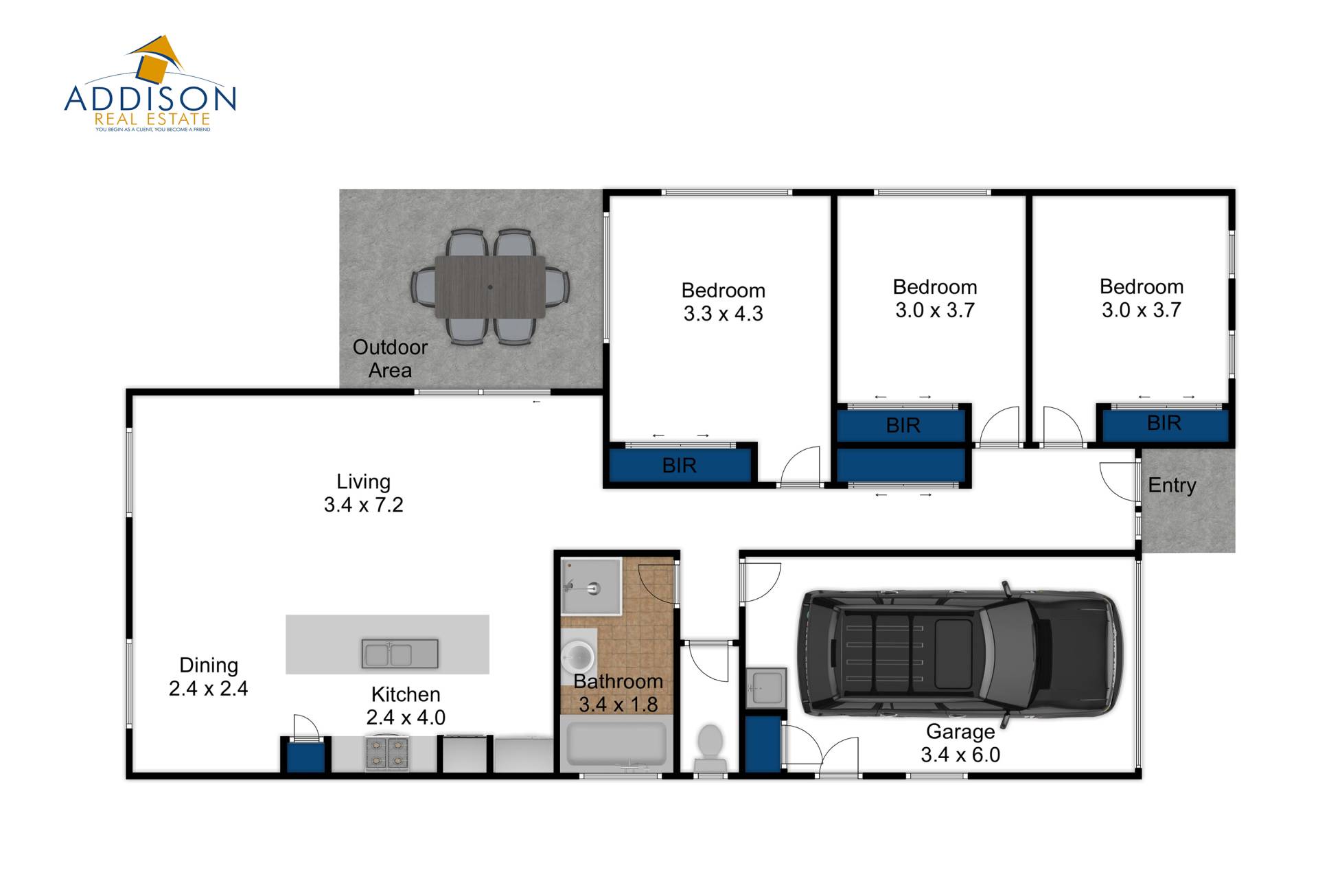 * Open Plan living with reverse cycle a/c.
