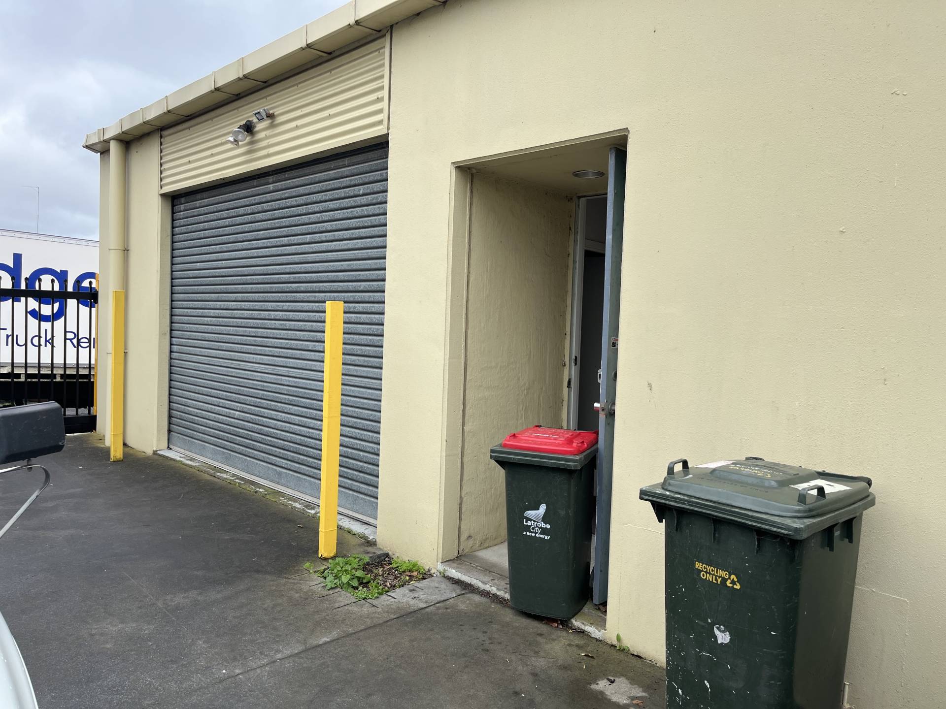 - Rear Roller Door opening onto a private driveway.