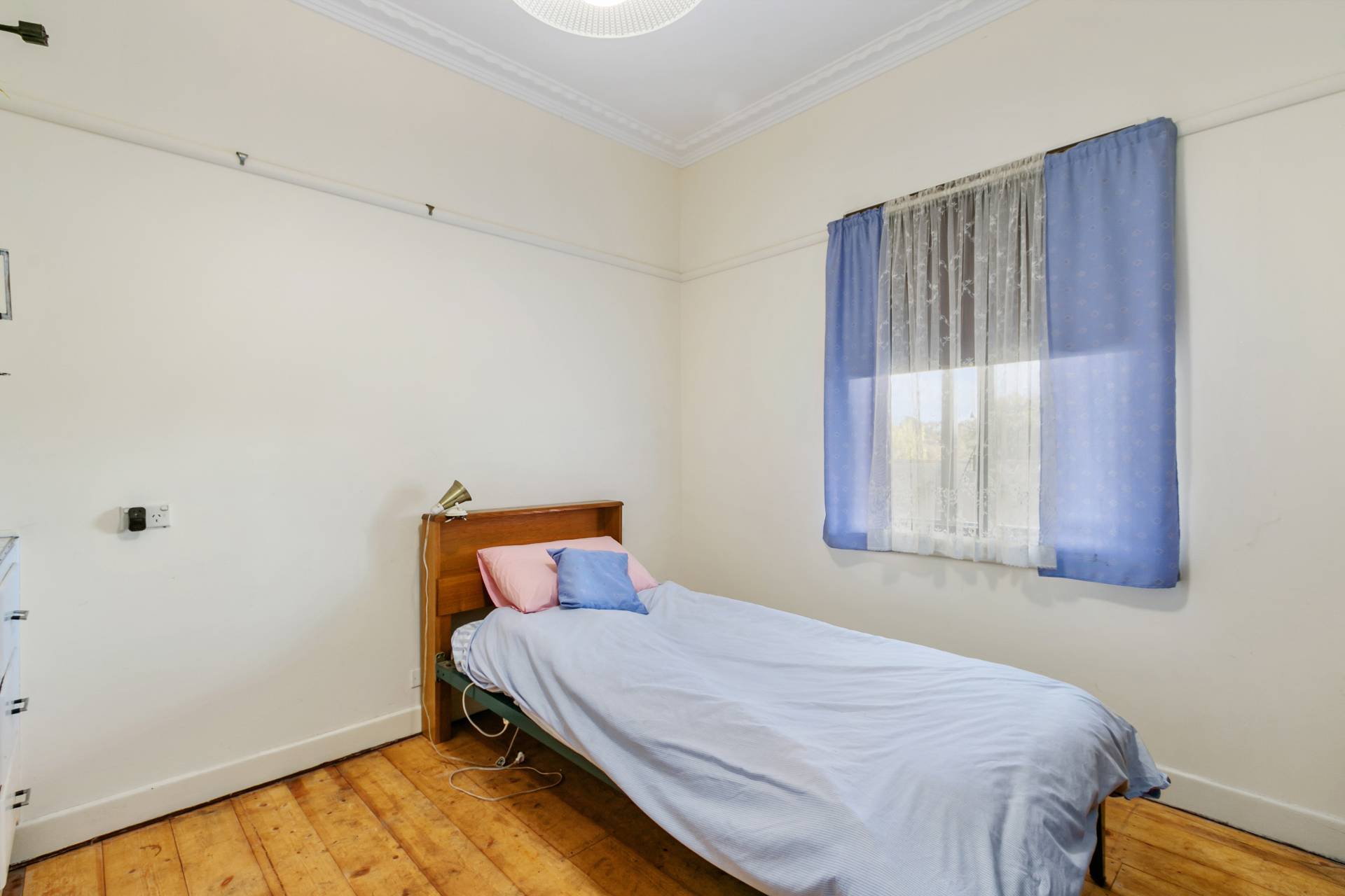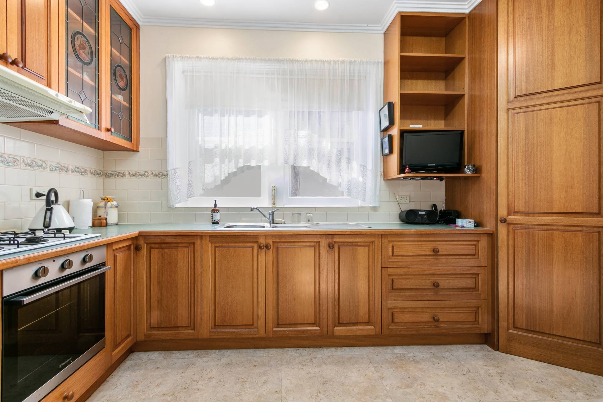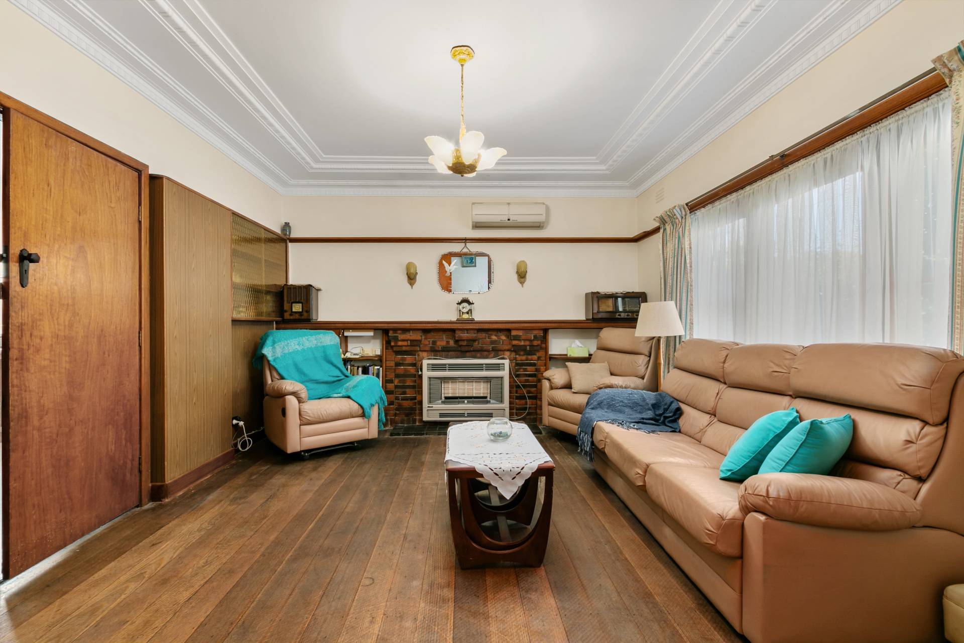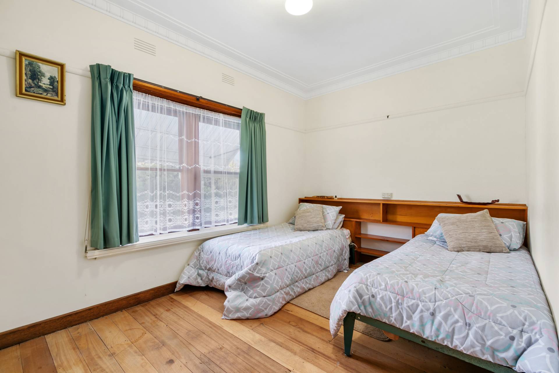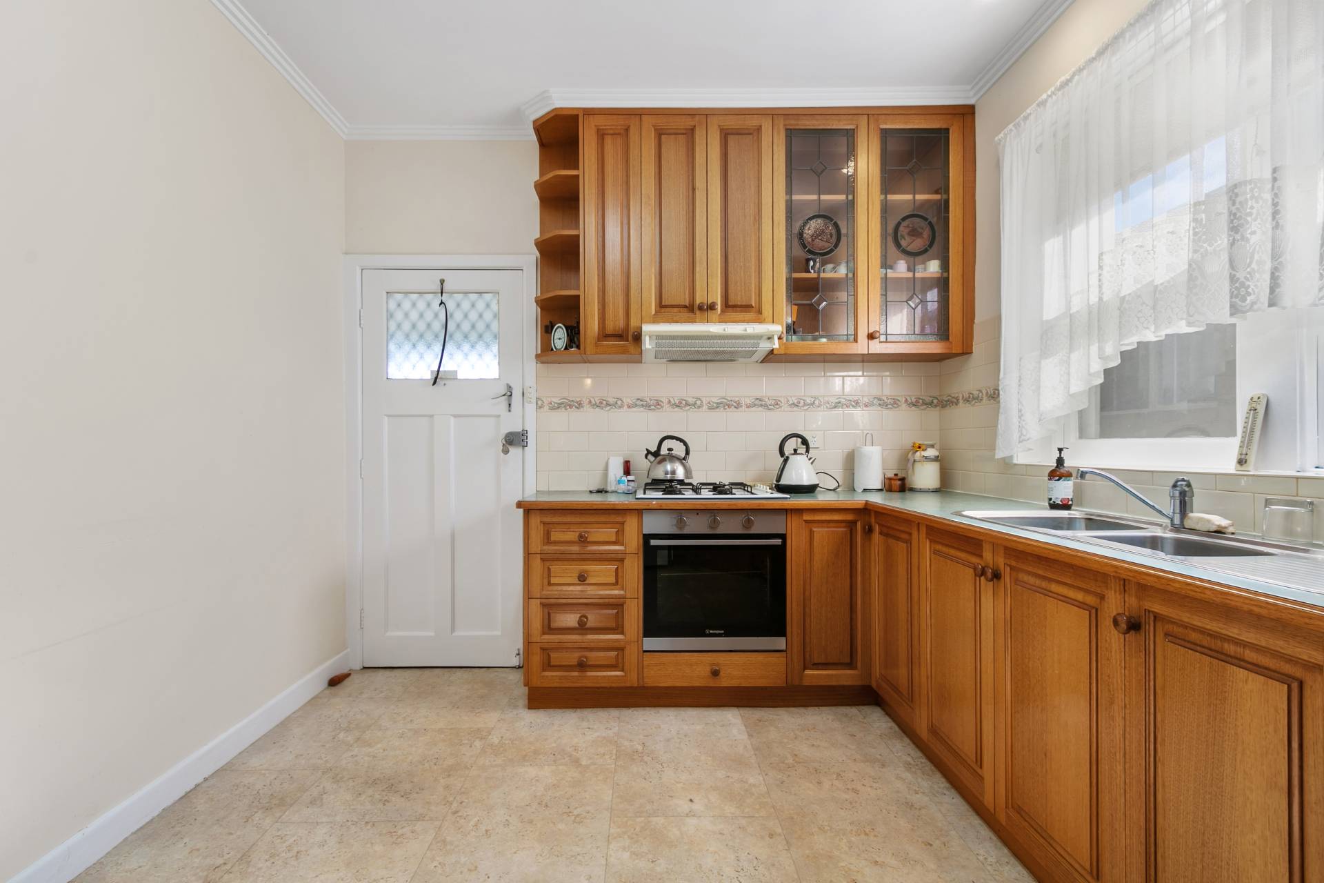 - With lots of original features like etched glass, hardwood timber floors and door surrounds to hand built in cupboards.