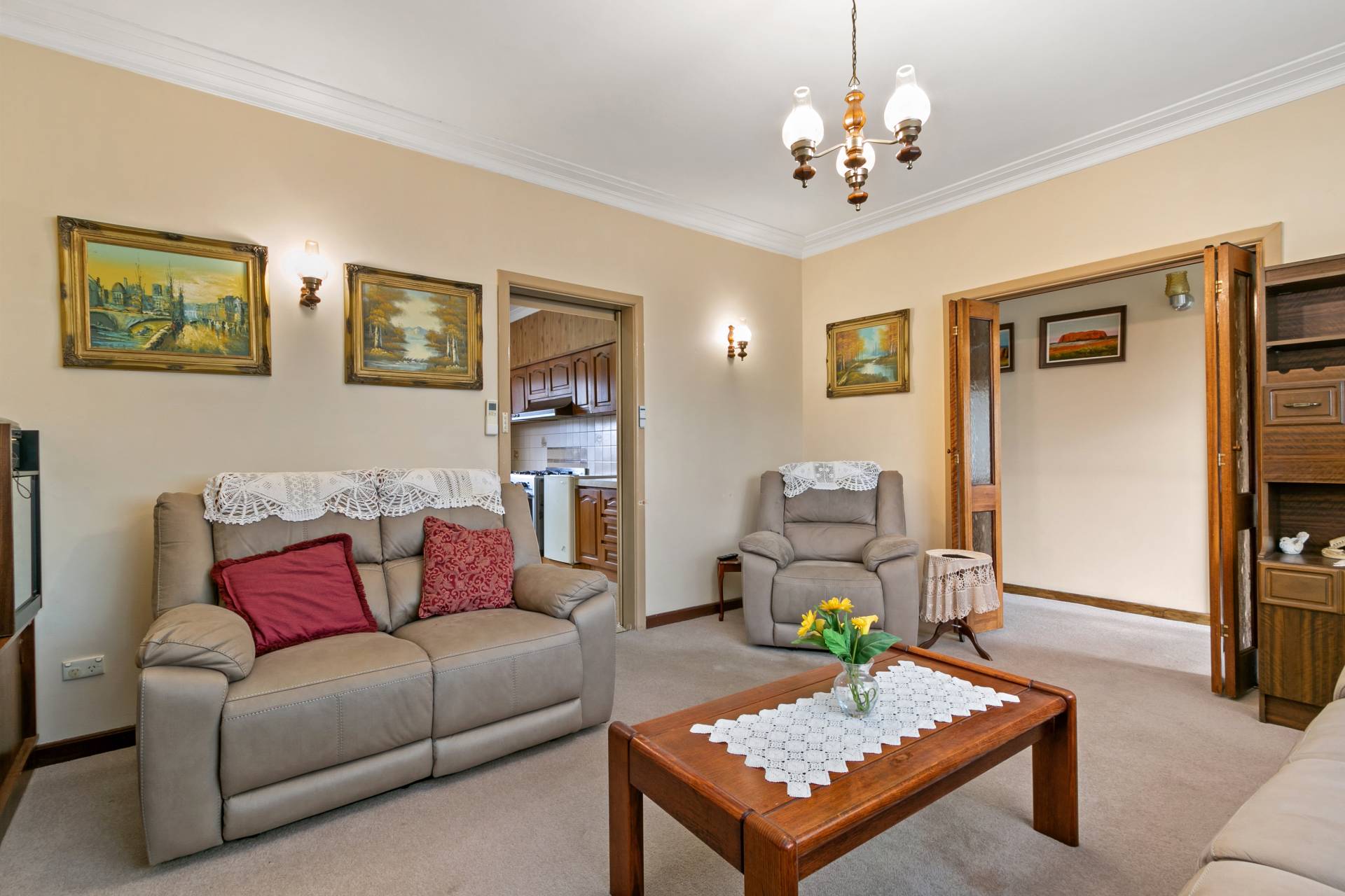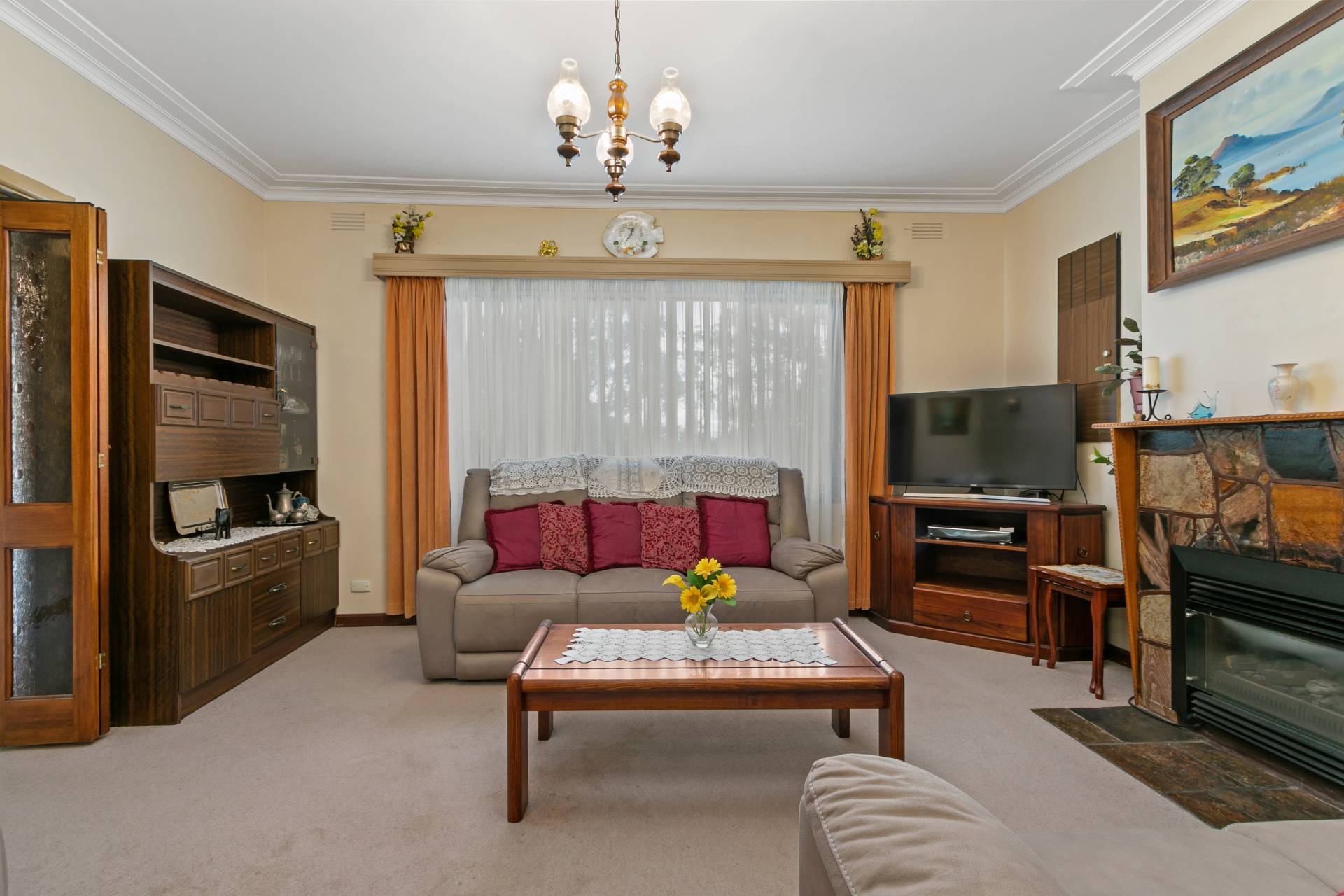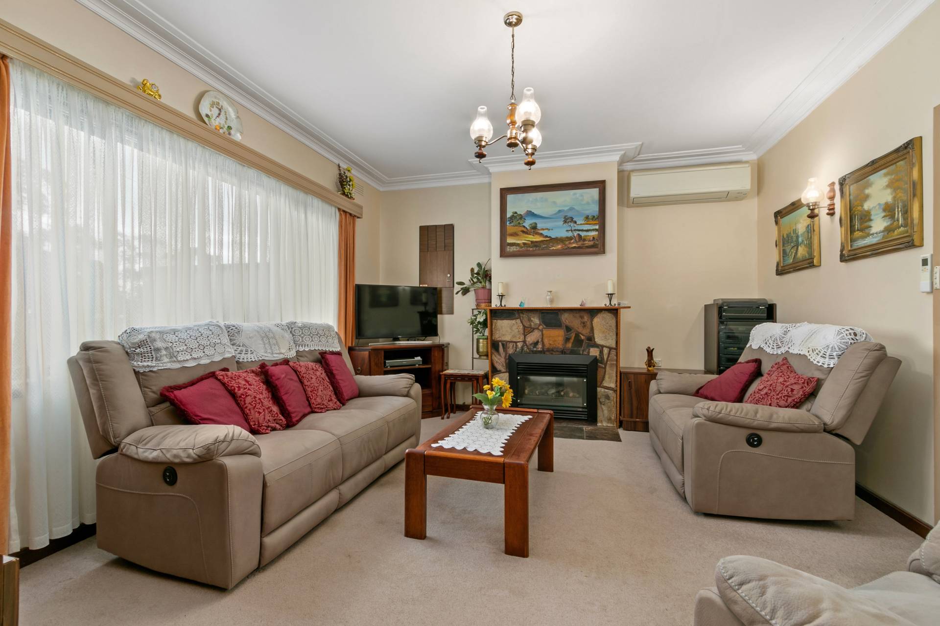 • Spacious lounge room with ornate cornices gas log fire plus reverse cycle air-conditioning