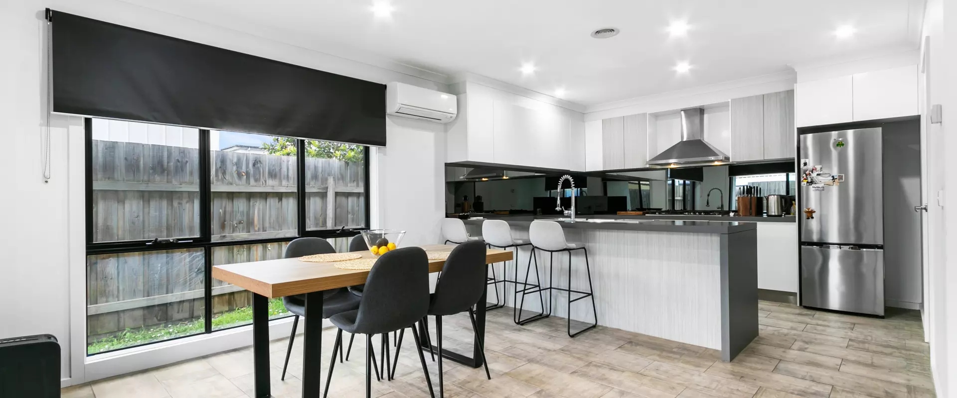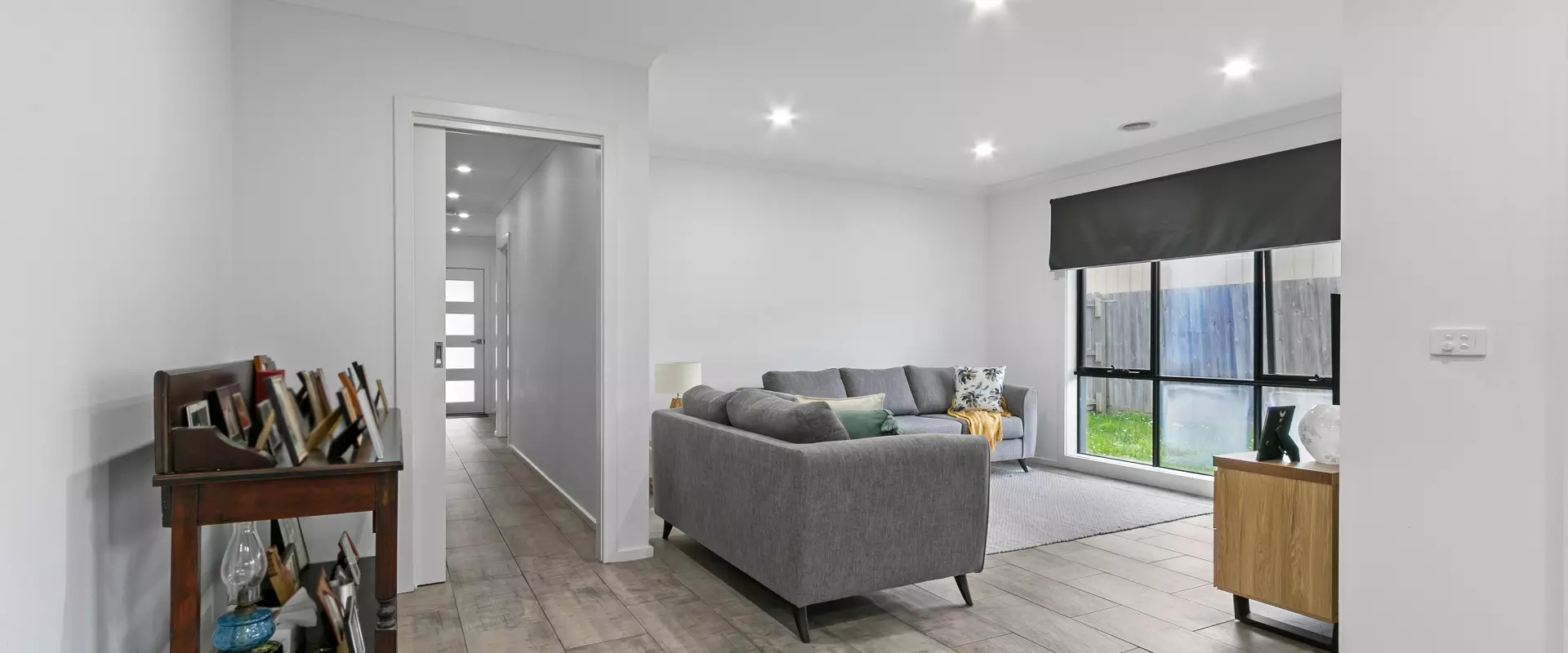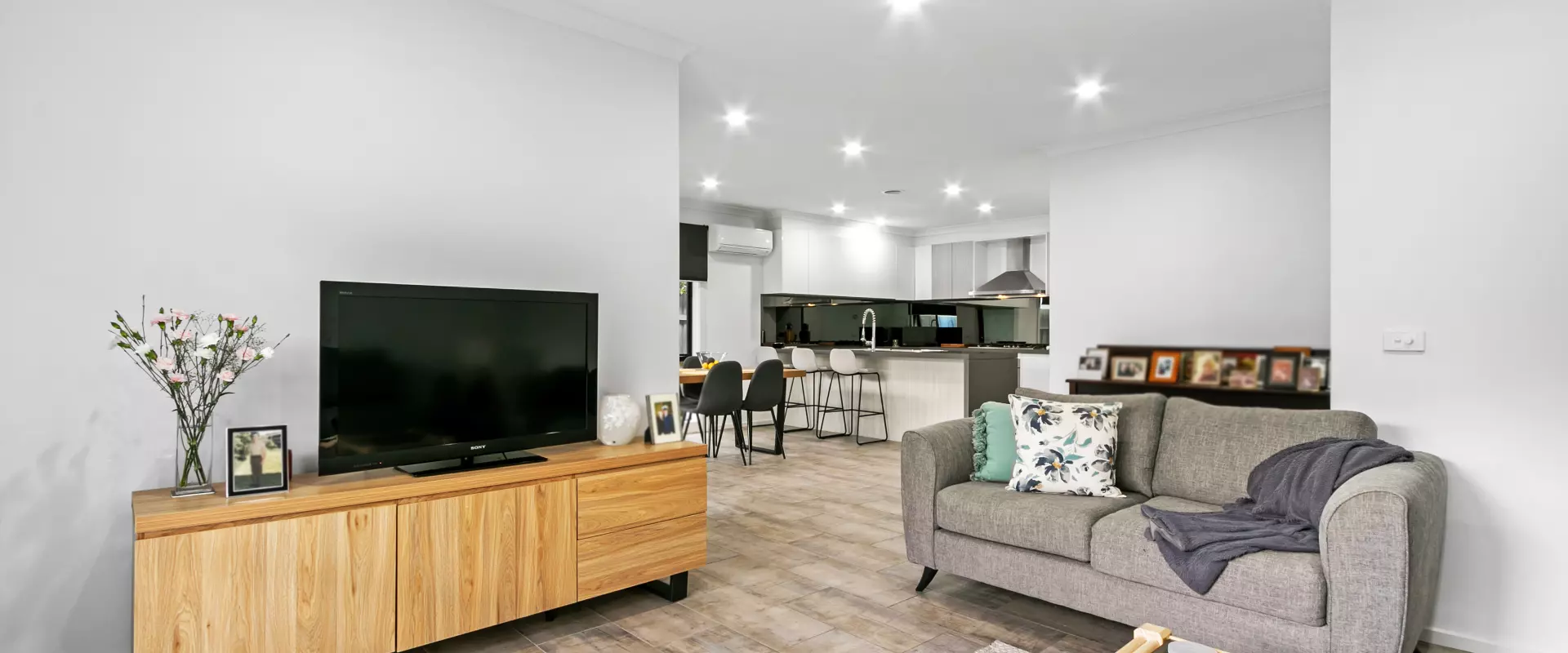 • Open style living kitchen area, fully tiled and opens up to a private yard and outdoor undercover area