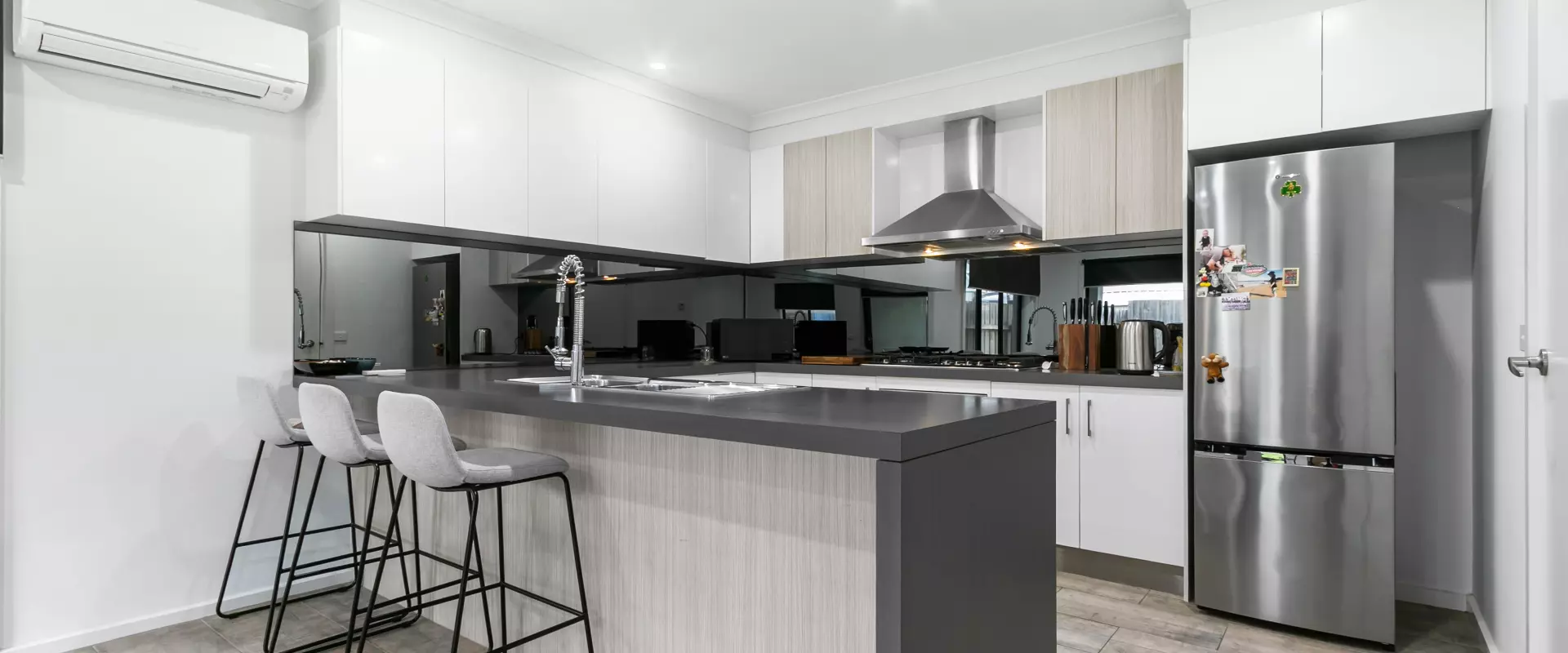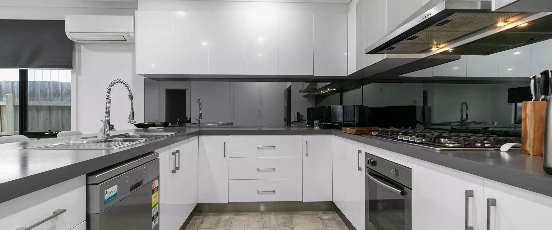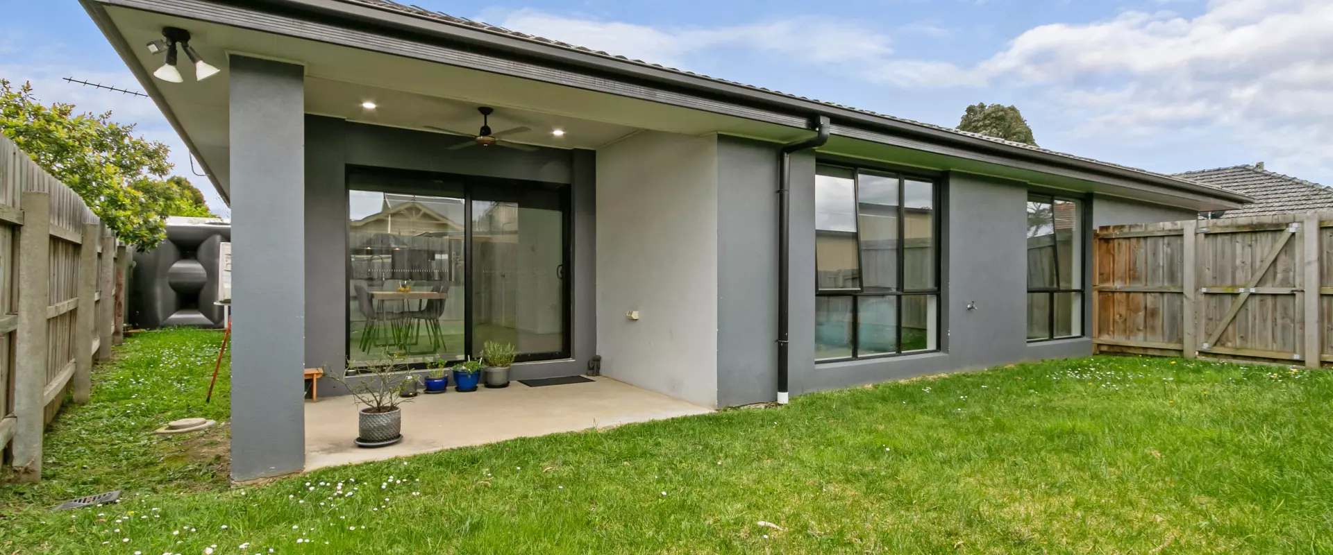 • Open style living kitchen area, fully tiled and opens up to a private yard and outdoor undercover area