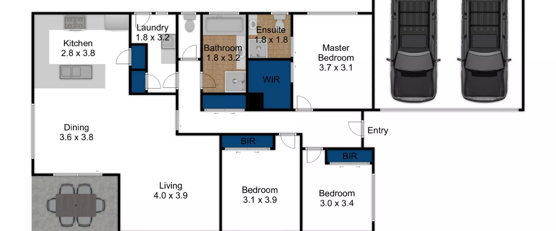 • 3 bedrooms (ensuite and WIR to main)